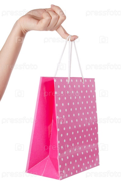 Подарочный пакет в руке на белом фоне