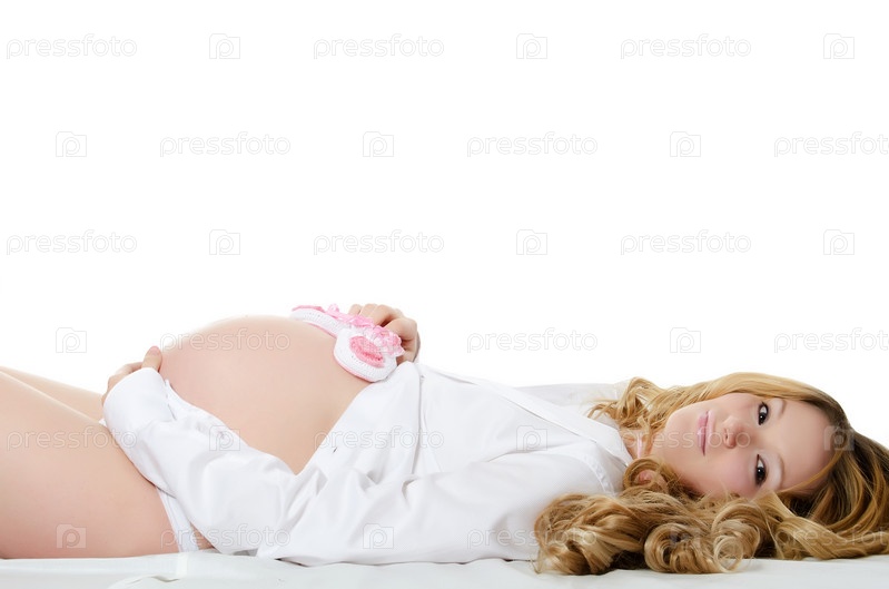 Беременная женщина на белом фоне