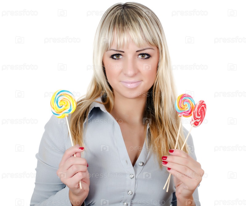 Девушка с леденцами, изолирована на белом фоне