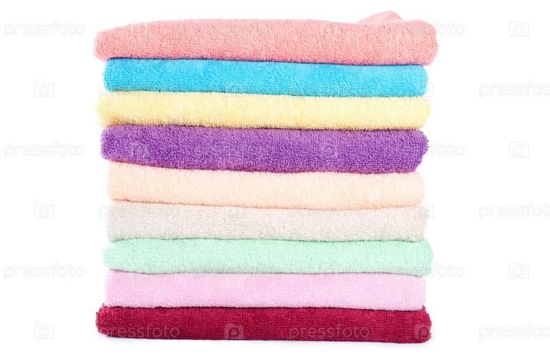 Стопка цветных полотенец, изолированных на белом фоне