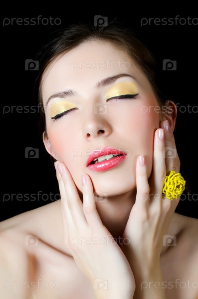 Портрет девушки с вечерним макияжем на черном фоне