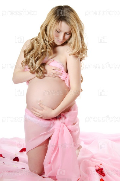 Беременная женщина на белом фоне