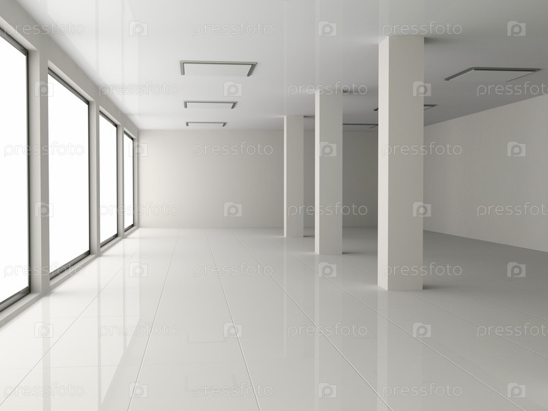 Белый пустой зал с колонной