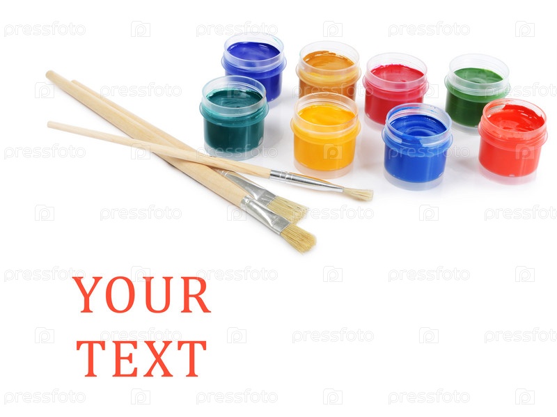 Баночки с красками на белом фоне