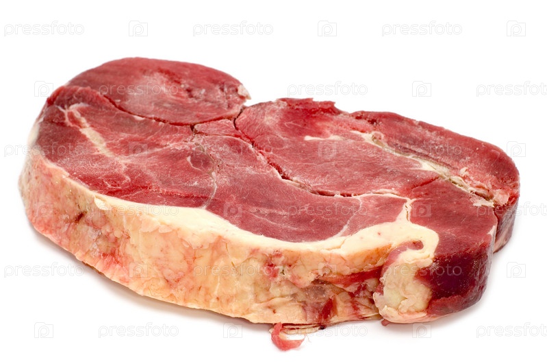 Кусок замороженного мяса на белом фоне