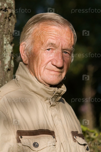 Портрет седого пожилого мужчины на природе
