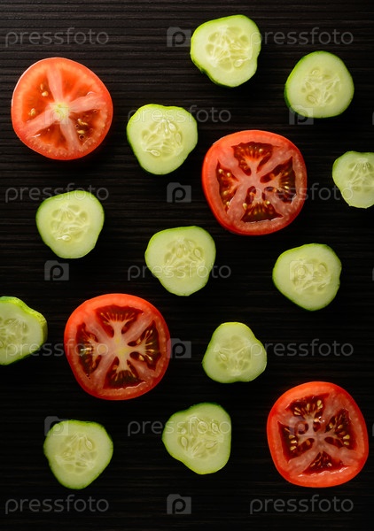 Нарезанные помидоры и огурцы