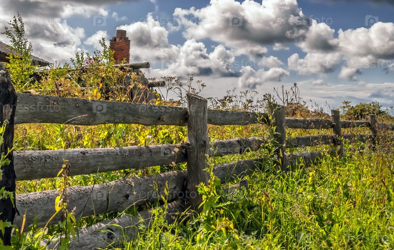 Старый деревенский деревянный забор