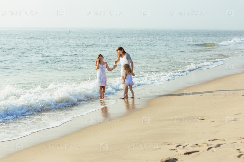 Мать с дочерьми на пляже