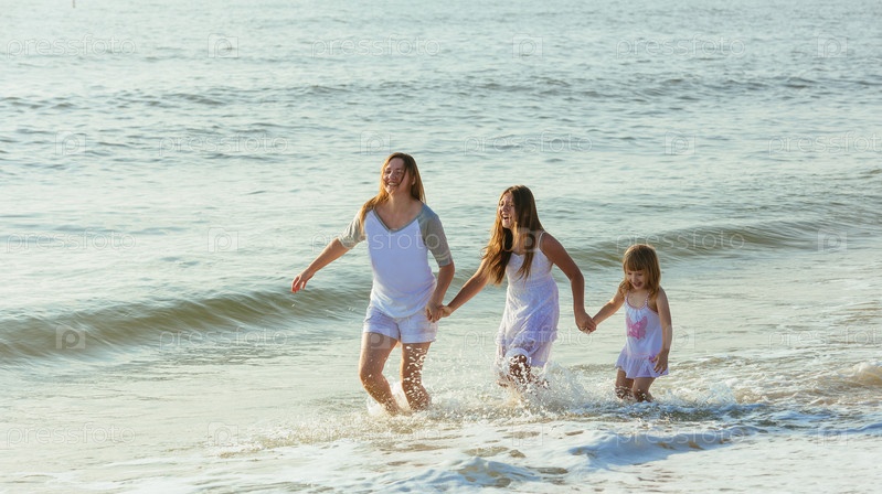 Мать с дочерьми на пляже