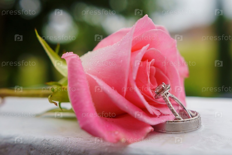 Обручальные кольца и роза