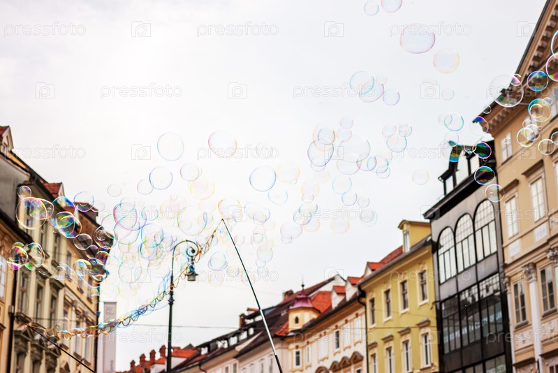 Мыльные пузыри на фоне старого города
