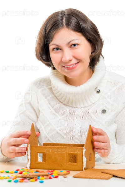 Женщина делает пряничный домик