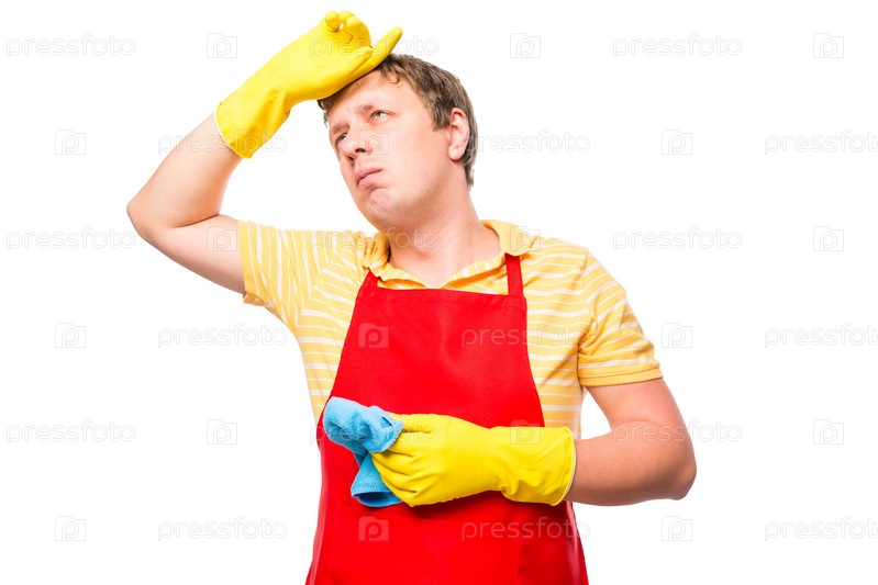 Уставший хозяйственный мужчина