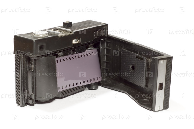 Серийный объект на белом: изолирован - Старый фотоаппарат с (фотографической) пленкой