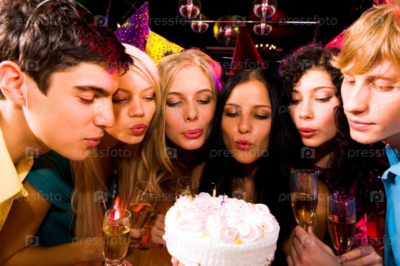 Изображение умных друзей, взрывающих свечи на рождественском торте после пожелания