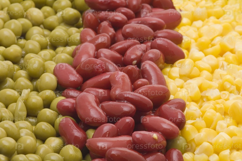 Объект на белый - пища - зеленый горох с фасолью и кукурузой