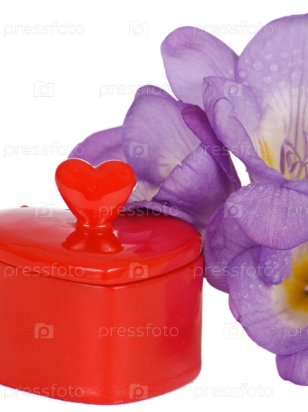Сердце и фиолетовая фрезия, изолировано на белом фоне