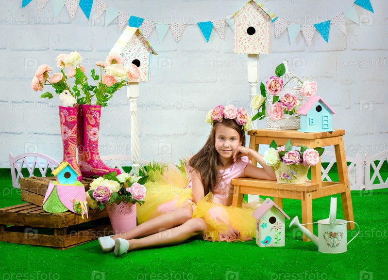 Красивая девочка в искусственном саду
