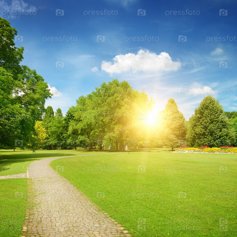 Восход солнца в прекрасном парке