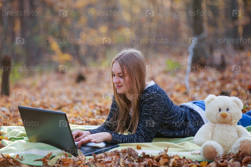 Девушка с ноутбуком в парке