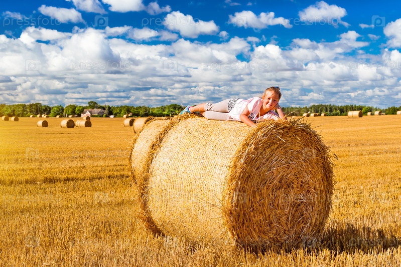Девочка на стеке соломы