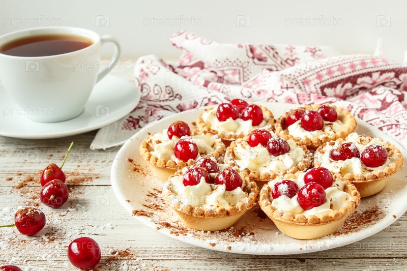 Тарталетки со взбитыми сливками и вишней
