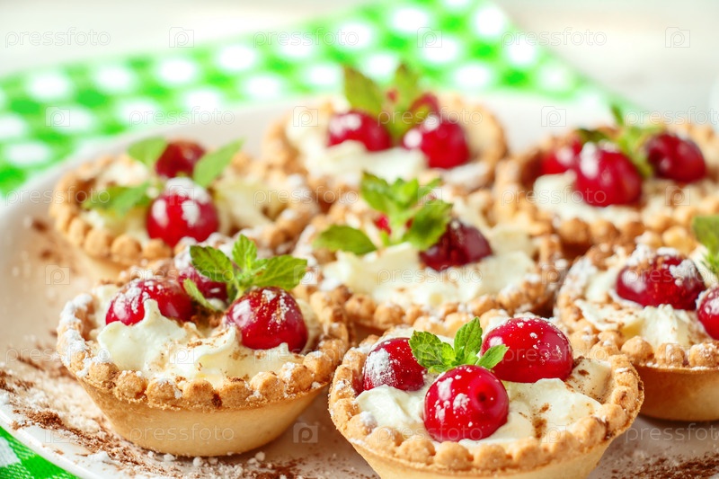 Тарталетки со взбитыми сливками и вишней
