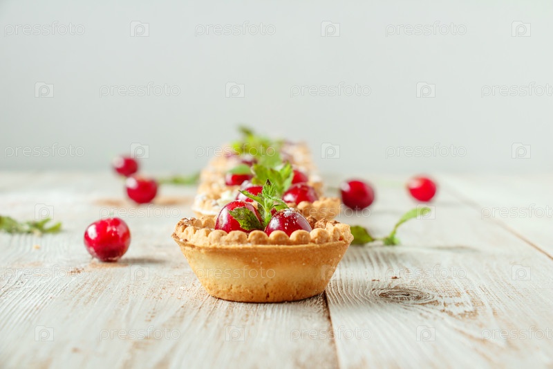 Тарталетки со взбитыми сливками и вишней