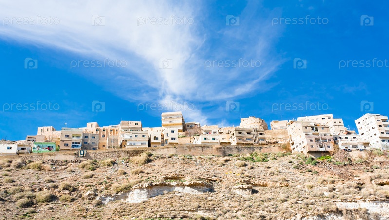 Вид на город Керак на каменном холме, Иордания