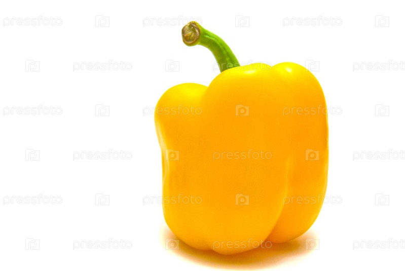 Один желтый перец на белом фоне