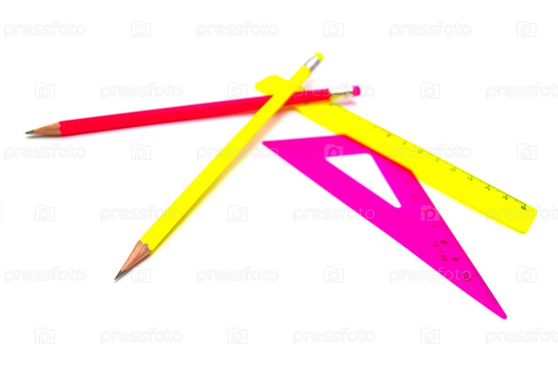 Цветные канцелярские принадлежности на белом фоне