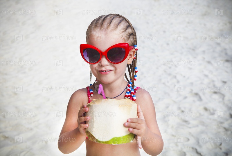 Милая маленькая девочка с коктейлем