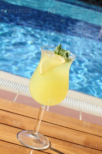 Коктейль на фоне бассейна