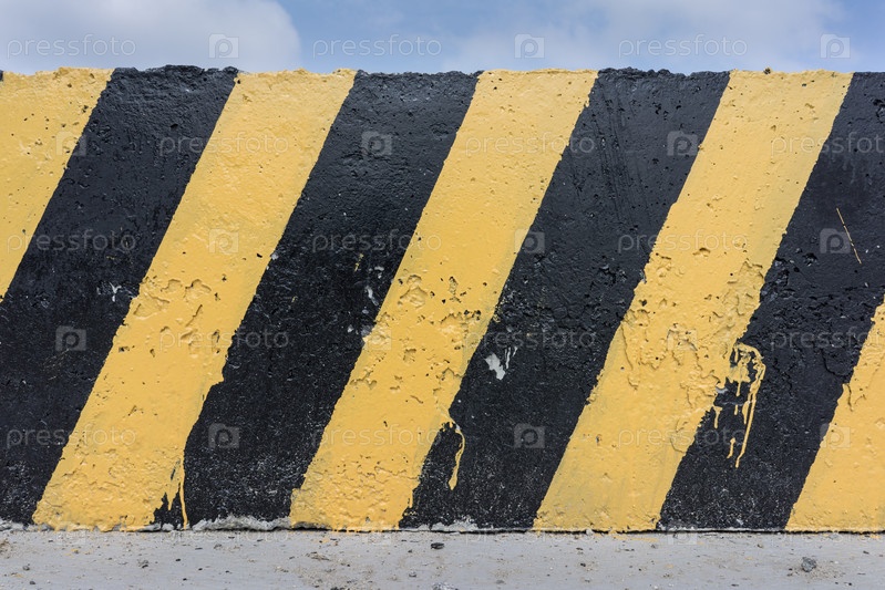 бетонная поверхность с наклонными полосами желтого и черного цвета