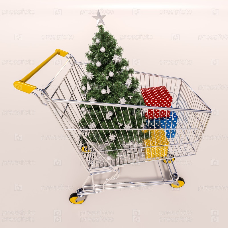 крупный план тележки с подарками