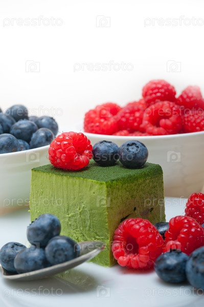Вкусный десерт с малиной и черникой