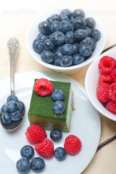 Вкусный десерт с малиной и черникой