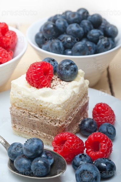 Вкусный десерт с малиной и черникой