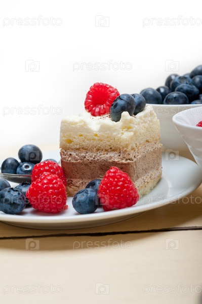 Вкусный десерт с малиной и черникой