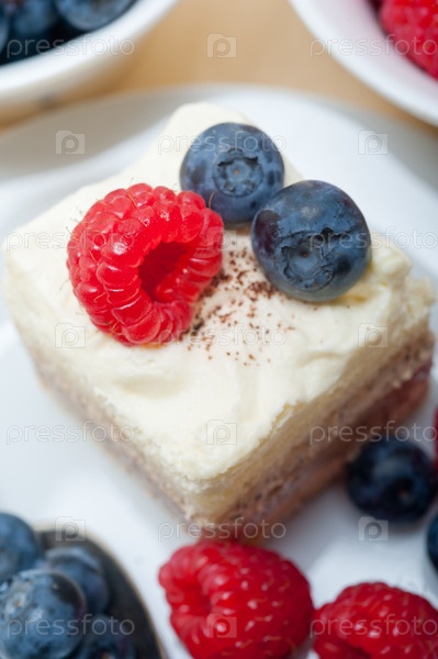 Вкусный десерт с малиной и черникой