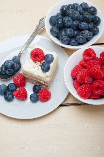 Вкусный десерт с малиной и черникой