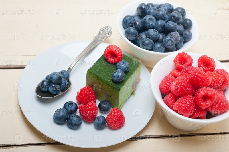 Вкусный десерт с малиной и черникой