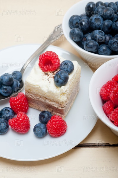 Вкусный десерт с малиной и черникой