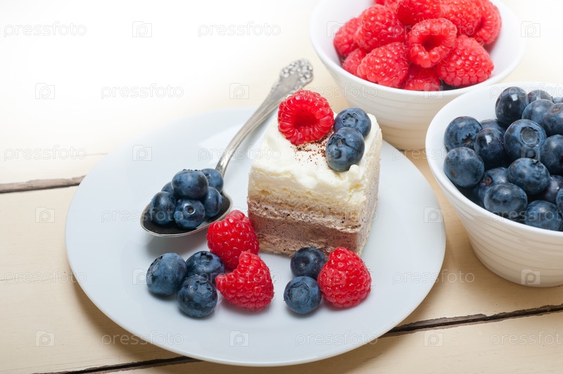 Вкусный десерт с малиной и черникой