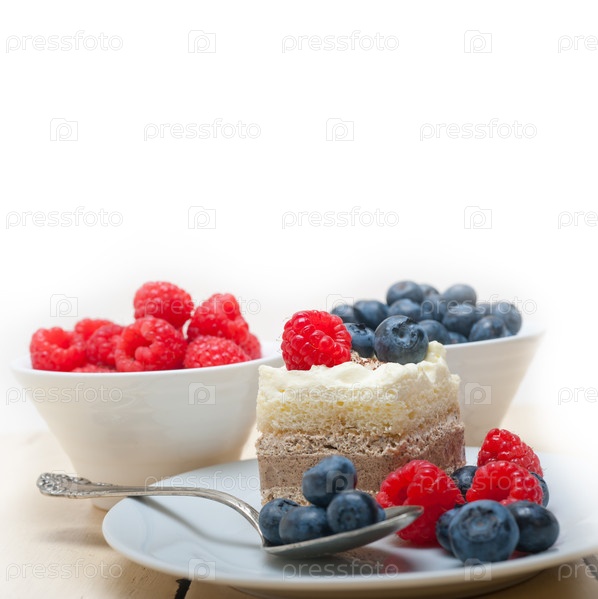 Вкусный десерт с малиной и черникой