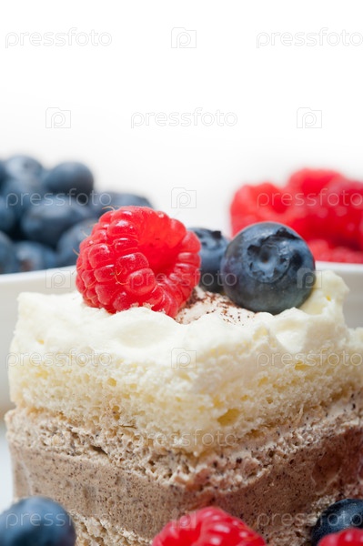 Вкусный десерт с малиной и черникой