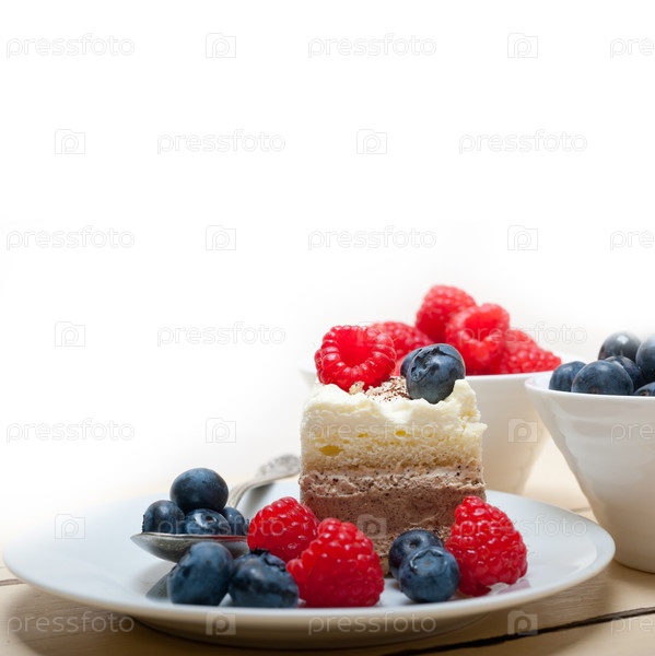 Вкусный десерт с малиной и черникой