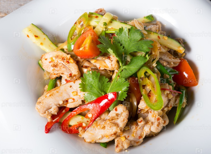 Азиатское блюдо с мясом и овощами
