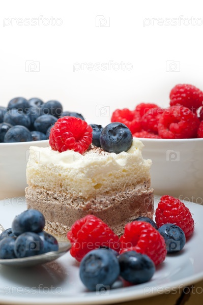 Вкусный десерт с малиной и черникой
